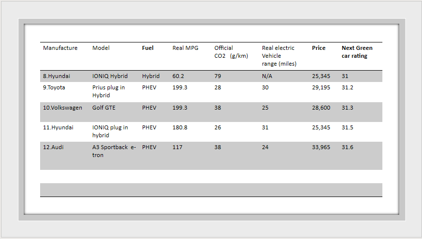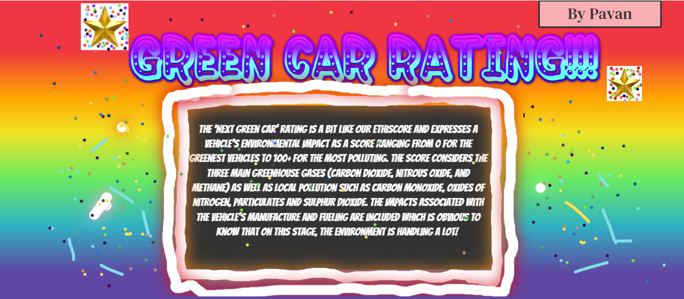 Green cars are when it's environmental friendly and reuses things to make the car. Here are the examples of the green car's purpose: